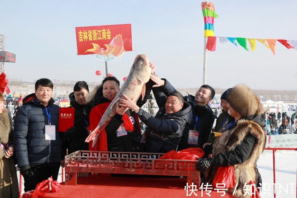为了讨个好彩头,祭湖仪式一结束,渔老大就会把捞鱼的网兜伸进早已凿开的冰洞中,从里面捞出一条大鱼。这条大鱼就是前面所说的“头鱼”,也叫开湖鱼,意味着开湖顺利。这条象征着好运的开湖鱼会被公开拍卖,出价最高者可以付钱拿走。