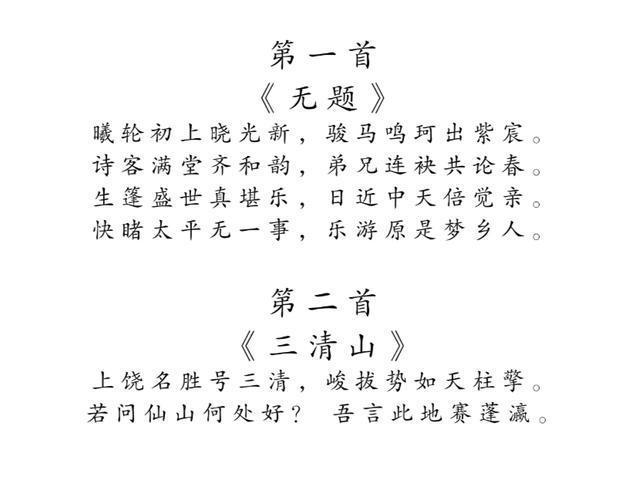 而且成名后的他,不满足于背诗,还尝试写了一些原创古体诗歌。本期笔者就给大家介绍其中的两首,个人认为是很有水平的: