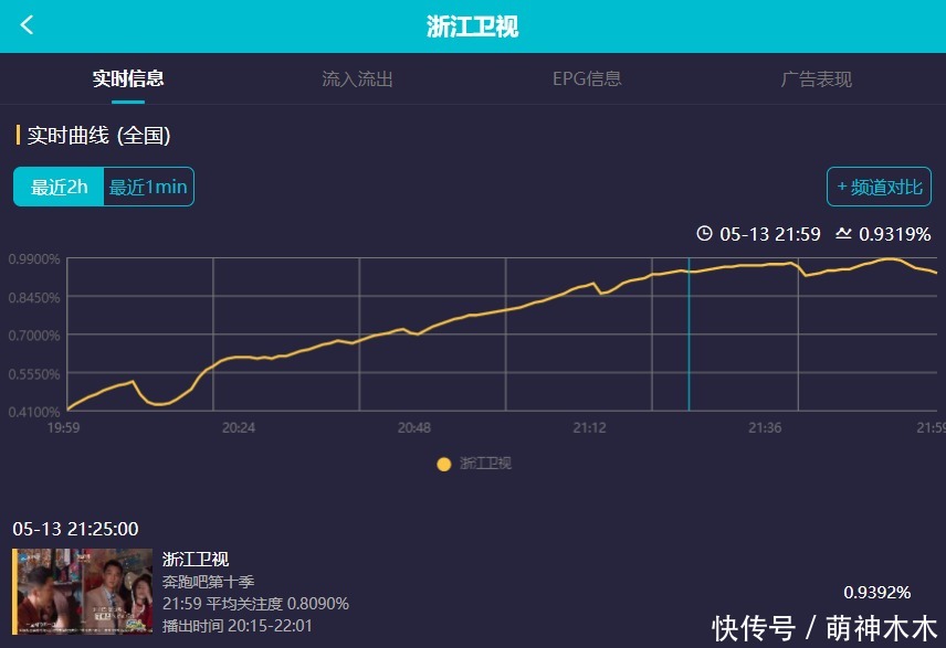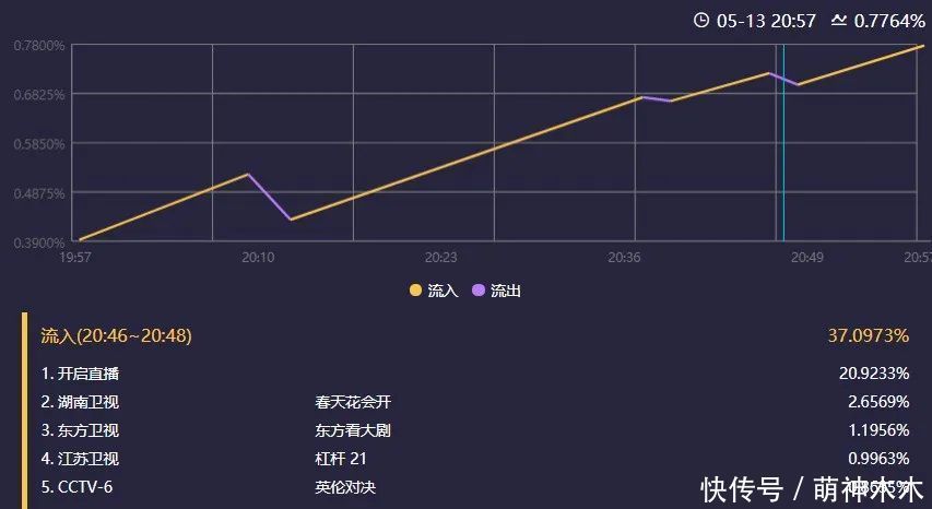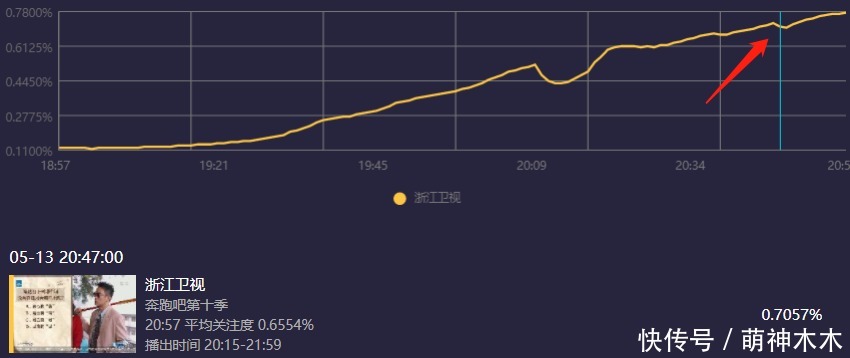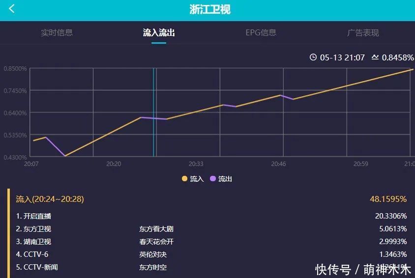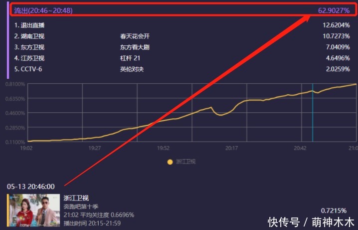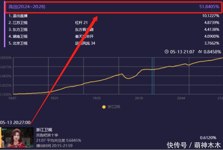 观众也是很干脆,说换台就换台,浙江卫视立马有了51%的观众流失,时间点还是挺清晰的,就是20:24到20:28之间。
