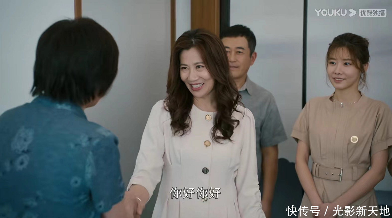 另外一段精彩戏份,就是双方父母初次见面,餐桌上的部分。《幸福到万家》的造型指导是陈敏正,给每个角色设计的造型和服装非常合适,一对比,王家父母就是典型的农村人,而亚妮父母就是时尚的城里人。和与何幸福相处的态度不同,亚妮妈面对热情的庆志母亲,握手的时候脸上笑的很勉强,这样的细节也被演员注意到了。