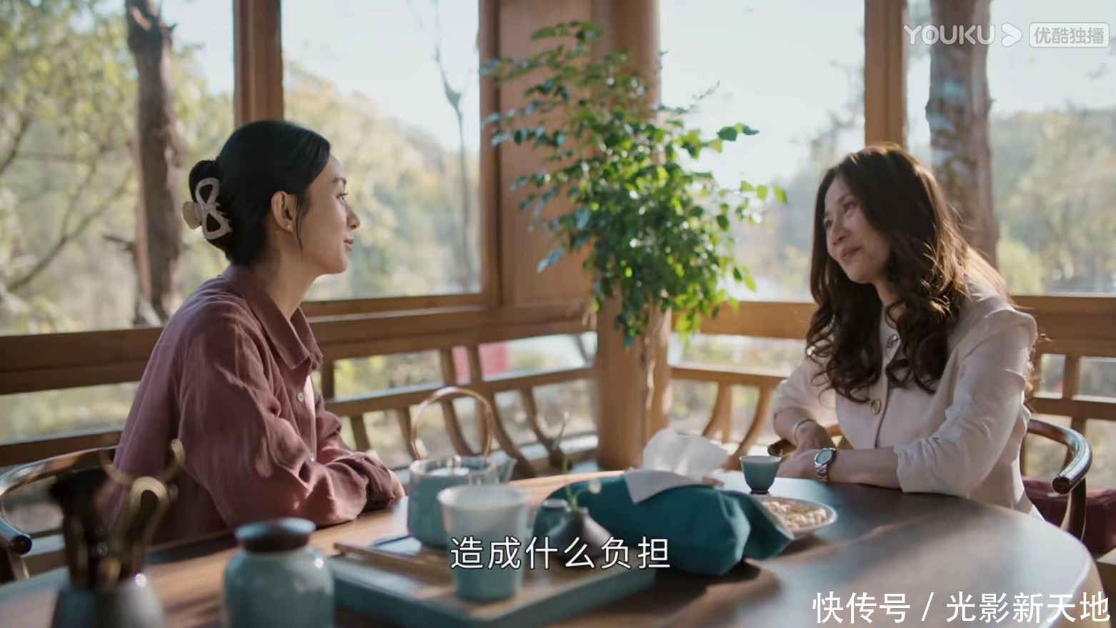 接着最有意思的一幕来了。说到底,幸福是外姓人,为什么这么热情的帮庆志张罗婚事?亚妮妈妈心里是打鼓的,她很担心何幸福这么热情,是想让亚妮父亲帮什么忙,所以就想先把丑话说在前头,于是支开所有人,单独和幸福聊天,开场就说“那我就不绕弯子了”,接着开始说她那帮穷亲戚。