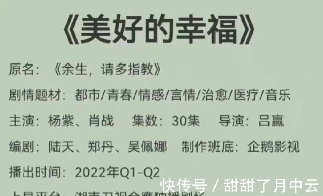 2022年1月27日,有内部消息透露,杨紫和肖战主演的都市爱情电视剧《余生,请多指教》将改名《美好的幸福》,一切为了能够顺利播出做准备。