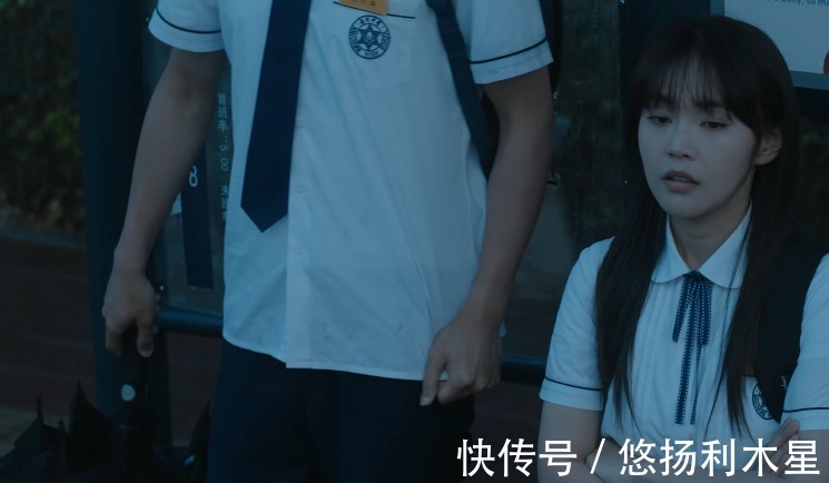 但当女主换上高中校服时,也是毫无违和感,过眉的齐刘海和不用多加修饰的小脸儿,满满的胶原蛋白,显得青春又阳光。