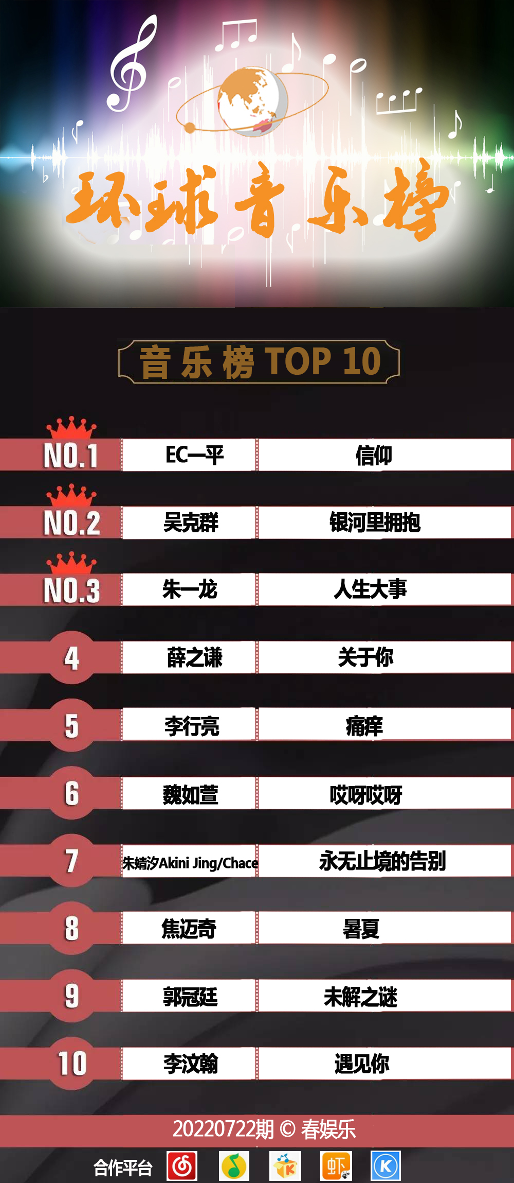 环球音乐榜EC一平《信仰》朱一龙《人生大事》薛之谦《关于你》同榜