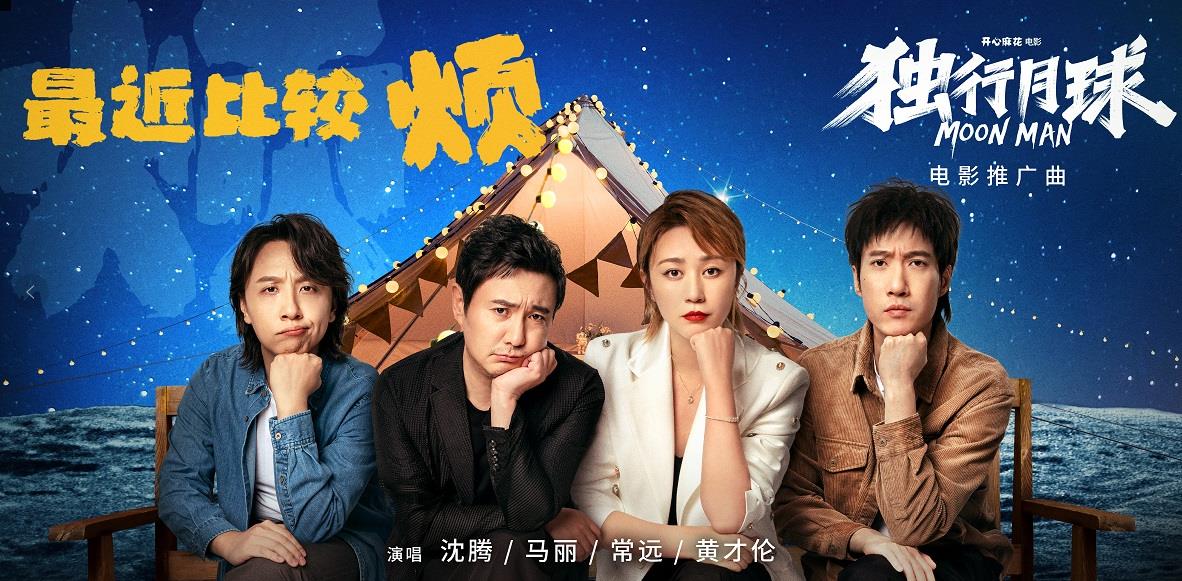 由张吃鱼执导,沈腾、马丽领衔主演的开心麻花科幻喜剧《独行月球》即将于7月29日全国上映。影片今日发布由沈腾、马丽、常远、黄才伦合唱的推广曲《最近比较烦》MV,四人老友组团露营,打开话匣子互诉烦心事,“躺平、减肥、养生、内卷”的烦恼引发满满共鸣,让人直呼“互联网嘴替”,配合着歌曲节奏大跳太空步,放飞自我魔性十足。