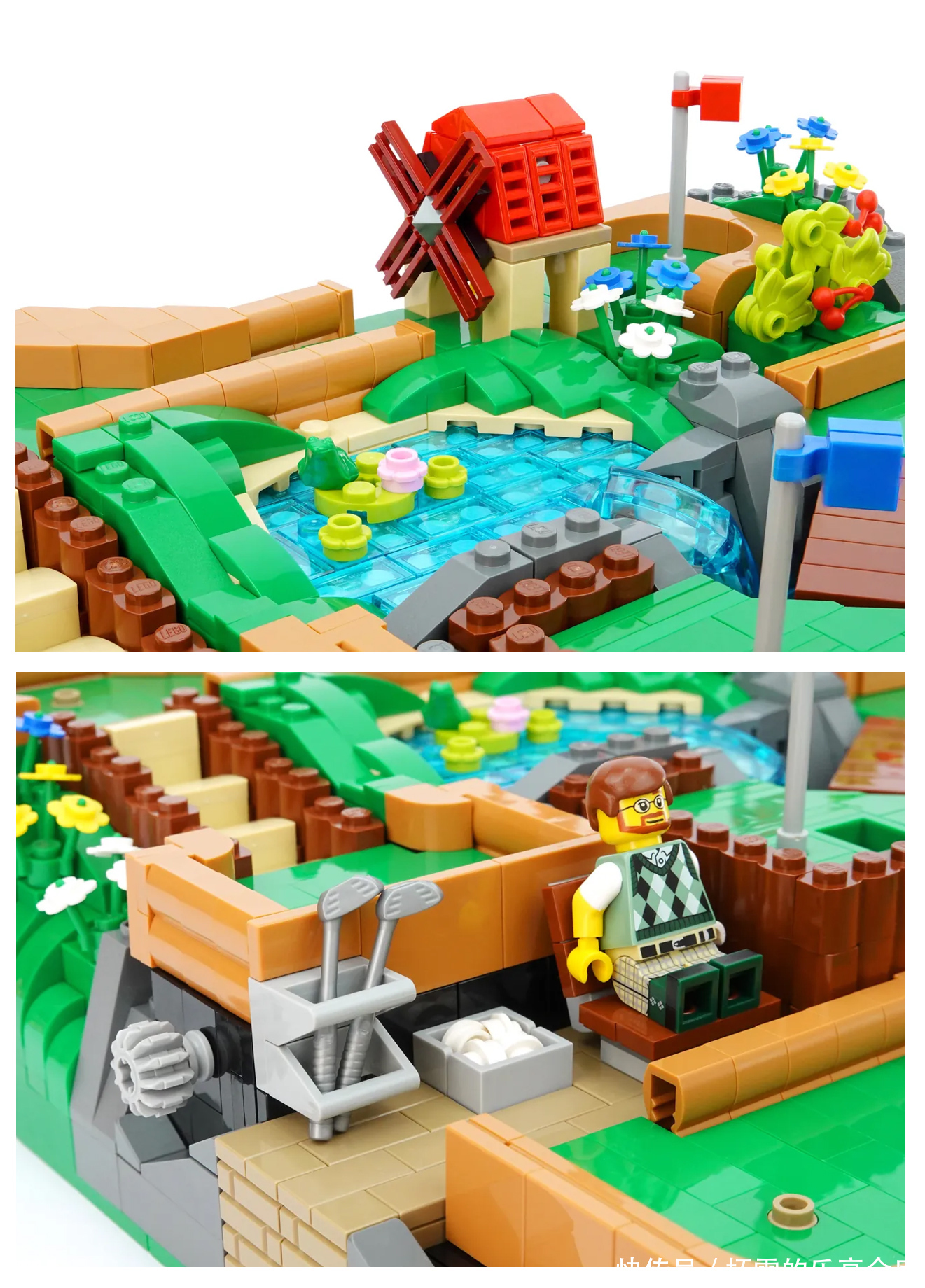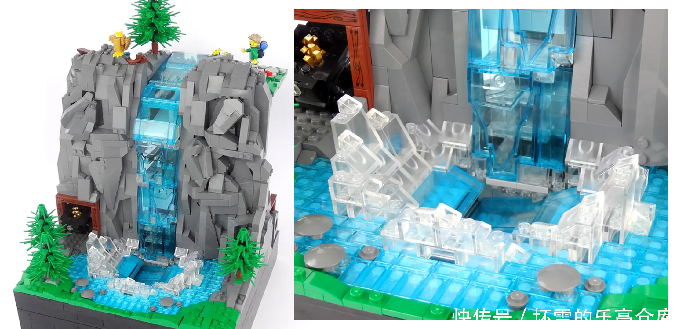 多开几朵花我愿意相信这是花果山。犬牙交错的石块、拔地倚天的气势,还有飞流直下迸起的水花……想想这两年乐高模拟山体都用一体零件,手动细节塑造简直是降维打击。然而悬崖并不是重点。