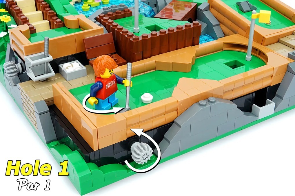 《WORKING MINI GOLF COURSE - FULLY PLAYABLE!》(《可以玩儿的迷你高尔夫球场 》)应运而生。(起名很有家族感)