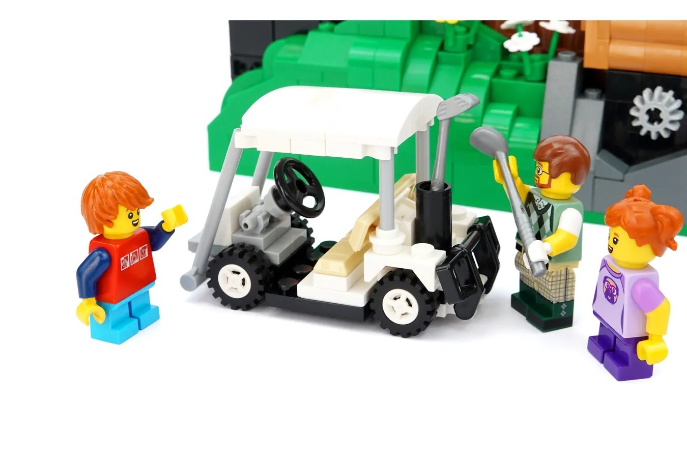 为确保赛程有序进行,玩家可以把所有装备都装进高尔夫球车里,开车去下一个区域。除了球童没有戴手套,LEGOParadise想得真周到,球车实在太可爱了。