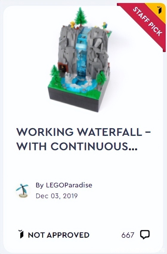 最早为LEGOParadise获得万赞俱乐部入场券的是水帘矿洞(《WORKING WATERFALL - WITH CONTINUOUS FLOWING WATER!》)。