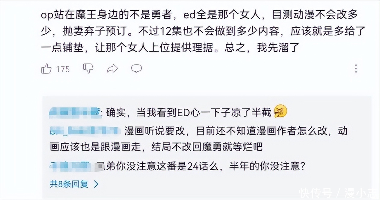 如果原著本来就已经烂尾,那么还原原著等于一条路走到黑,自然会让人大为失望。而《打工吧!魔王大人》轻小说就是经典的烂尾原著,它最大的败笔就是女二上位。作为女高中生的小千,本来只是《打工吧!魔王大人》里戏份不算多的女二,女一是美女勇者。魔王配勇者本来就是绝配,何况一个英姿飒爽,一个亚萨西,cp处起来也比较舒服。