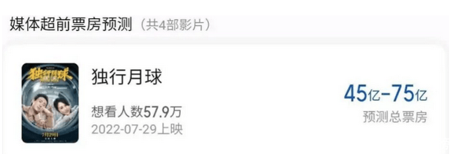 现各大媒体预计该片的票房最低的都高达45亿,而高的更是高达75亿(儒爷觉得这个有些太夸张了),不过按积压大媒体的预测,该片应该至少会在50亿以上,那么如果真如大家预测《独行月球》突破50亿的话,那么沈腾将超越吴京,成为新一代的票房之王。